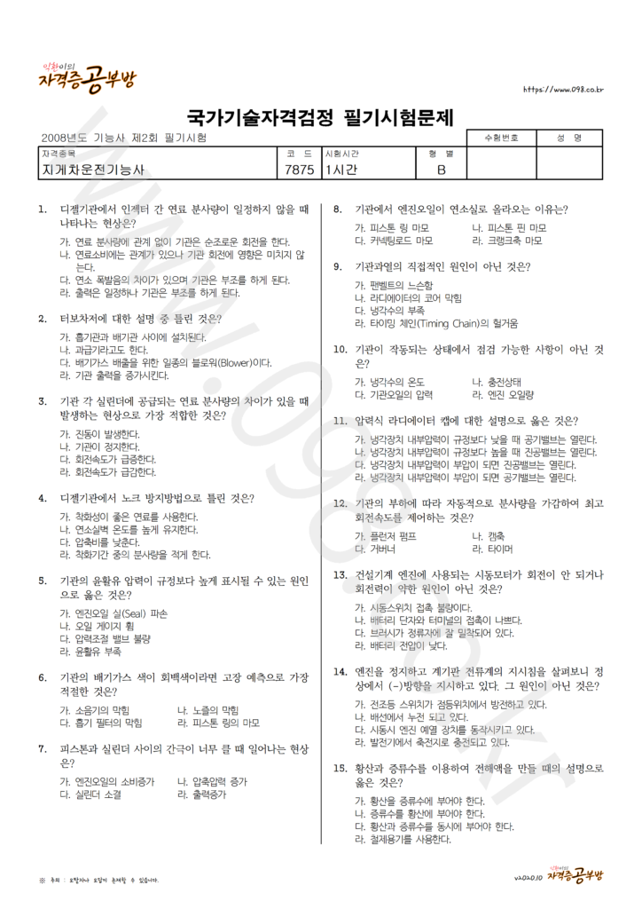 지게차운전기능사 2008년 제2회 기출문제를 조금 더 보기 편하게 편집한 파일입니다. 정답은 제일 마지막 부분에 포함되어 있습니다.