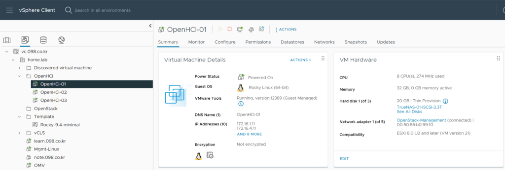 • 컴퓨팅 자원은 8 vCPU, RAM 32GB로 시작해서 실 사용량에 따라 조정해나갈 생각입니다. Ceph 구성 끝난 후에는 OpenStack을 구성해서 HCI 형태로 구성할 것입니다.