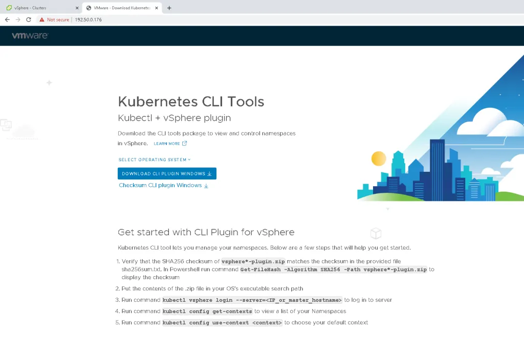 이제 제어부 IP 주소에 연결하여 Kubernetes CLI Tools 랜딩 페이지를 확인한다.