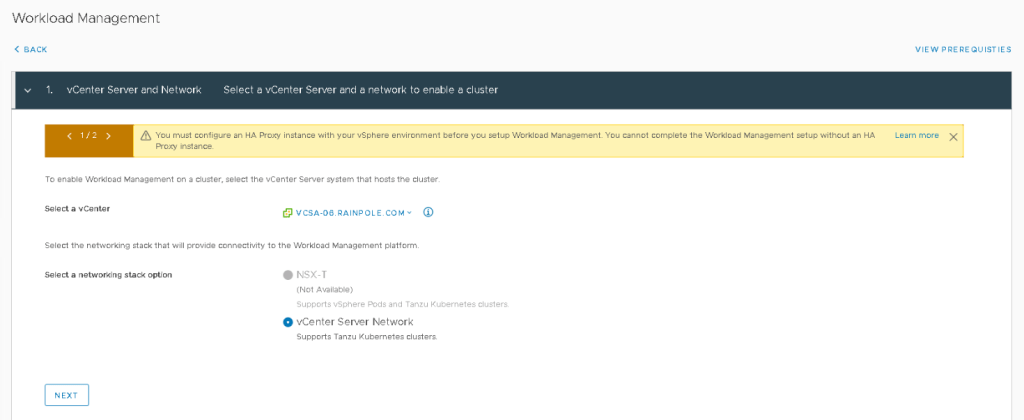 첫 번째 요구 사항은 네트워킹 스택을 선택하는 것이다. NSX-T를 Tanzu와 함께 vSphere와 함께 계속 사용할 수 있지만 vCenter Server Network로 이동하면 vSphere Distributed Switch(VDS)를 사용할 수 있음 그러나 이전 게시물에서 지적했듯이 vCenter Server Network(VDS + HA-Proxy)를 사용하면 PodVM 서비스를 사용할 수 없다는 점을 기억한다.