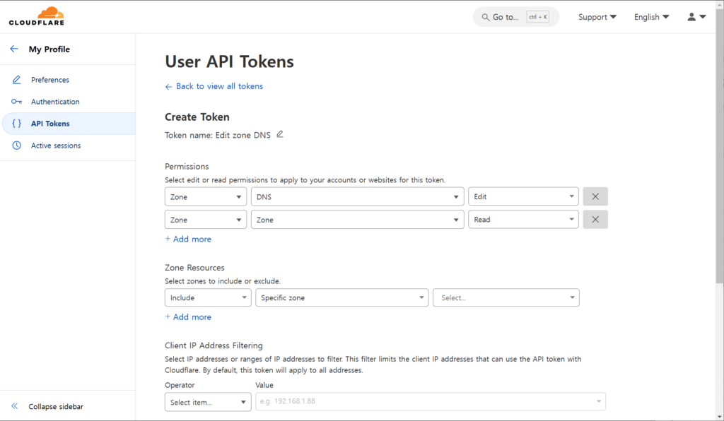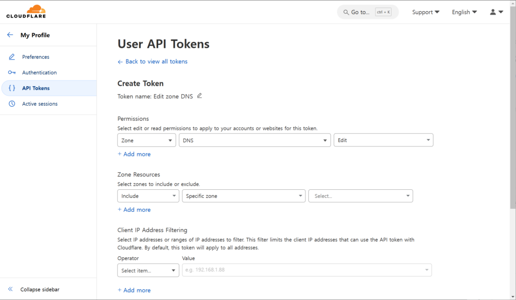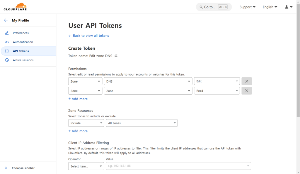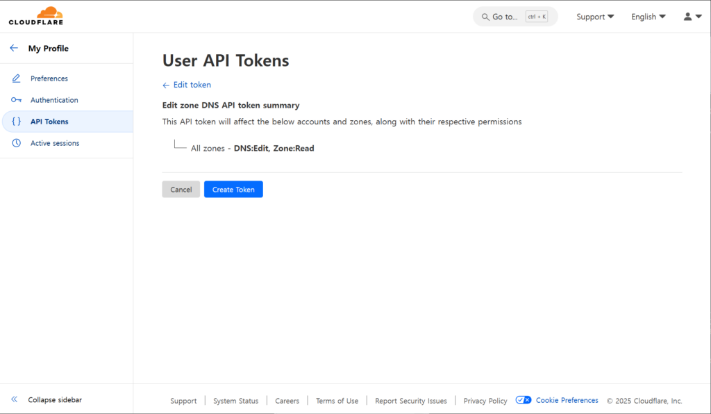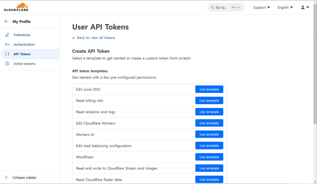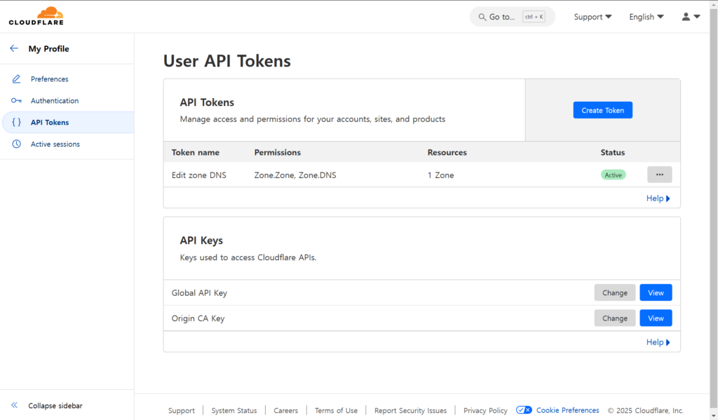 Cloudflare에 DDNS 처럼 사용하려면 API 토큰을 발급 받아야합니다.