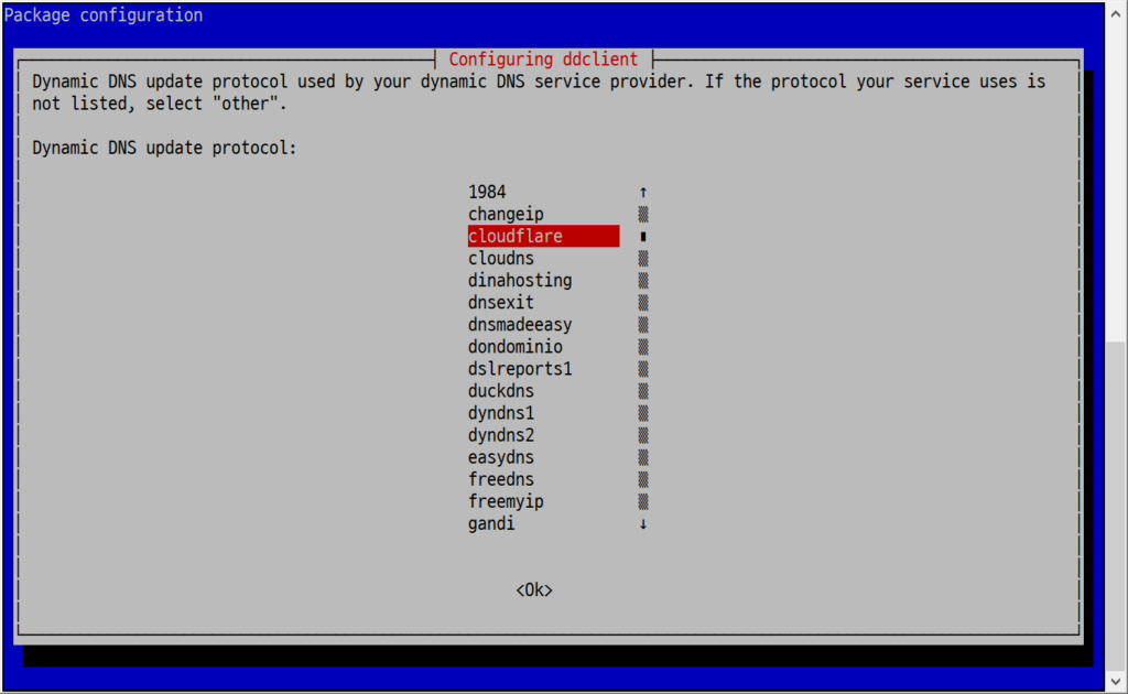 (14) 화살표 키로 cloudflare로 이동해서 엔터 키를 누릅니다.