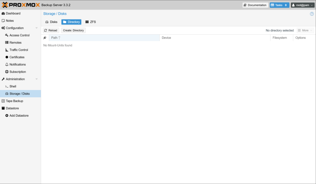 - 로컬 디스크의 경우는 Web UI를 통해서 Directory, ZFS 유형으로 구성