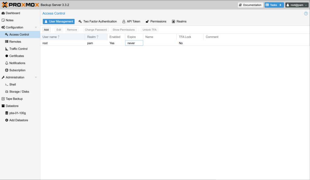 Proxmox VE가 Proxmox Backup Server에 연결하기 위해서는 적절한 데이터스토어에 대한 액세스 권한을 갖고 있는 사용자 계정 정보가 필요합니다. 백업용으로 사용할 계정을 추가하고, 권한을 주는 방법에 대해서 알아보겠습니다.