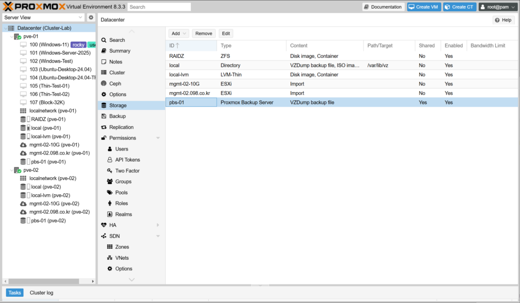 (8) pve-backup@pbs 의 암호를 입력합니다.