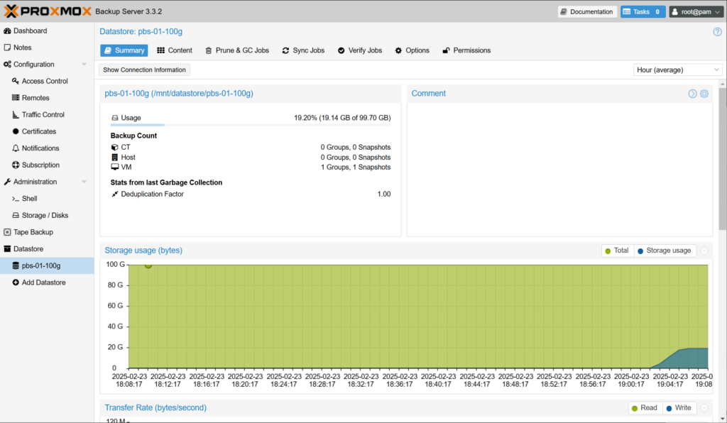 여기서는 VM의 Backup 메뉴를 통해서 Proxmox VE와 Proxmox Backup Server가 잘 연결되어서 동작하는지 정도만 확인하겠습니다. 자세한 내용은 Datacenter 부분에서 다루겠습니다.