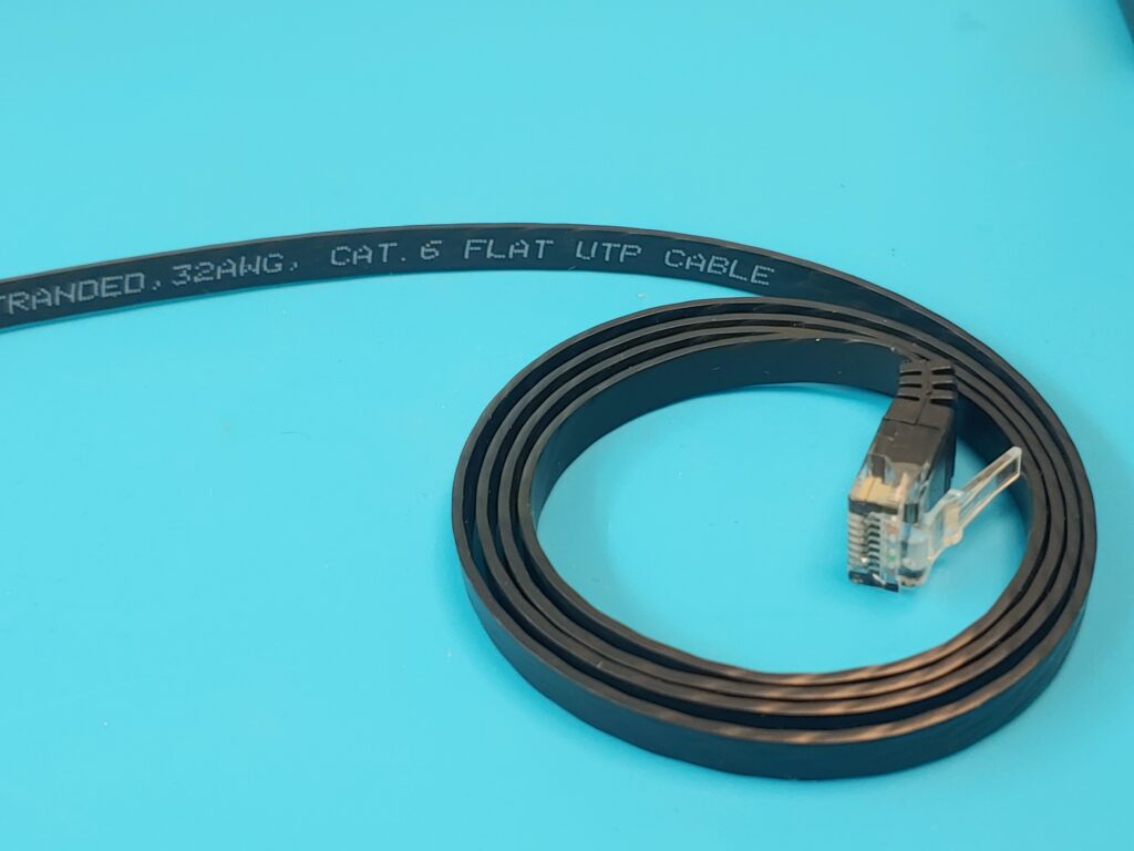 그리고 사진과 같은 아주 저렴해 보이는 플랫 케이블로 연결했습니다. 스위칭 허브 없이, 직결한거죠.