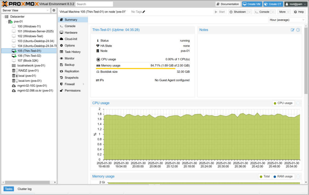 VM이나 컨테이너는 그림 처럼 Summary 창에서 위젯을 클릭해서 사용할 수 있습니다.