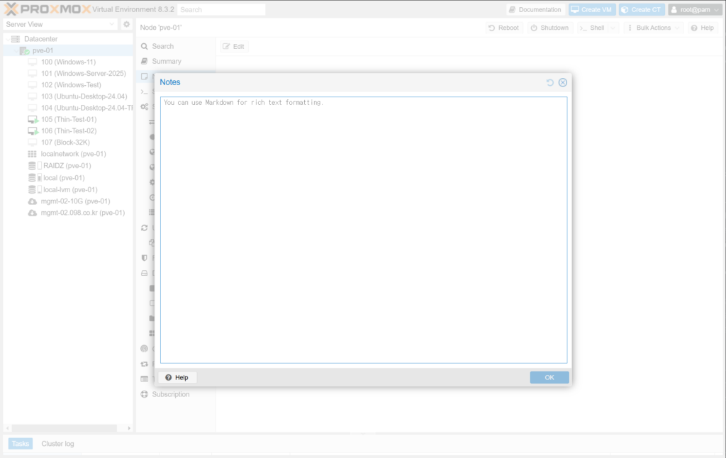 Edit 단추를 누르면 그림과 같은 입력 창이 표시됩니다. 여기에 텍스트 또는 마크다운 형식으로 작성합니다.
