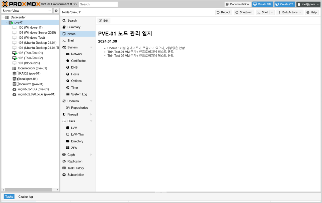 Datacenter, 노드는 그림 처럼 메뉴에서 선택해서 사용할 수 있습니다.