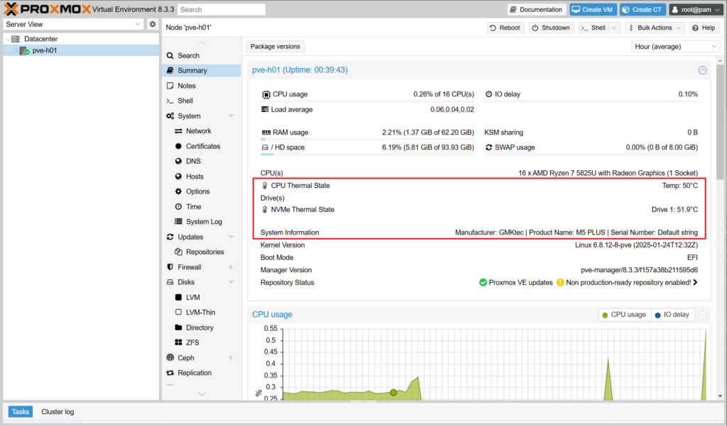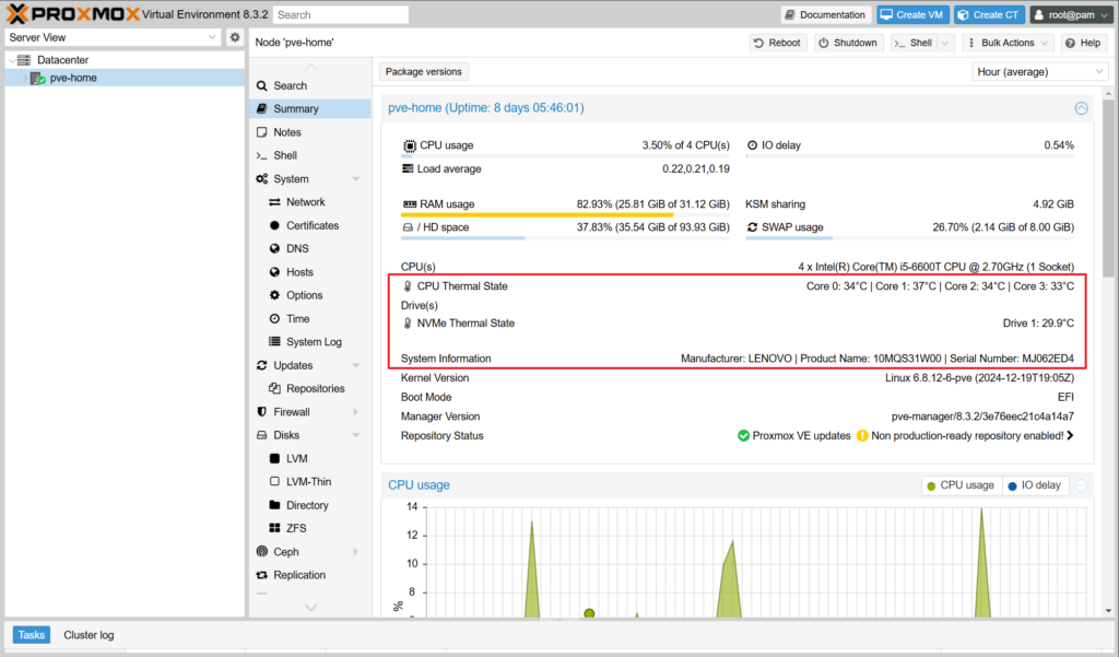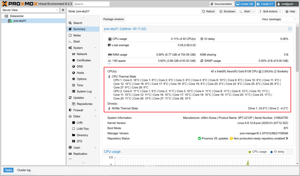 최근 장만한 2호기가 팬이 가끔 돌아갑니다. Proxmox VE에 ddclient만 설치하고 따로 설치한 것도 없거든요. 그래서 모니터링 방법에 대해서 좀 뒤적거려 봤습니다.