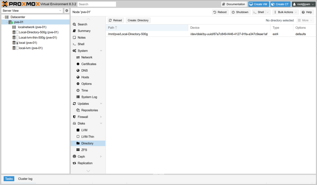 Directory 방식은 LVM을 사용하지 않고 일반적인 ext4 또는 xfs 방식으로 포맷해서 사용하는 방식을 의미합니다. Linux에서 가장 기본적으로 많이 사용하는 방식으로 백업, ISO 파일등의 용도로는 무난한 방식이라 생각됩니다.