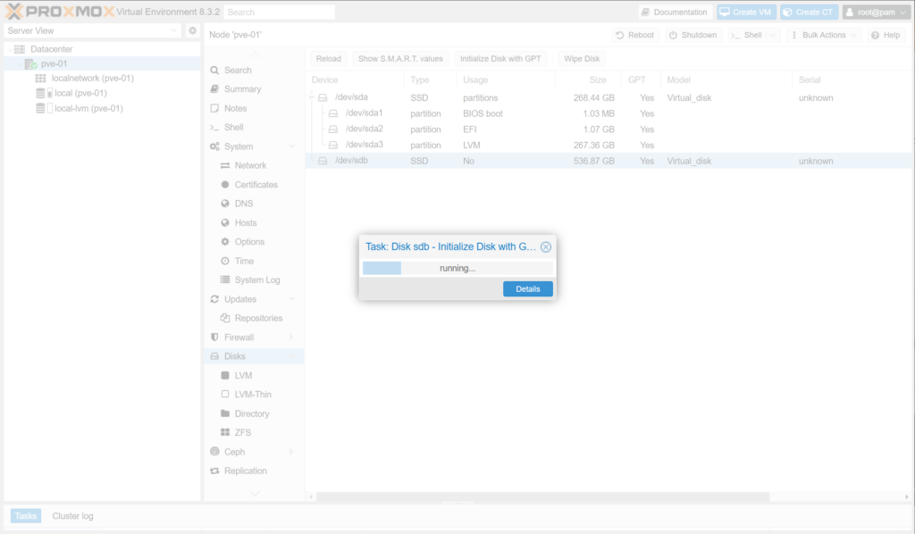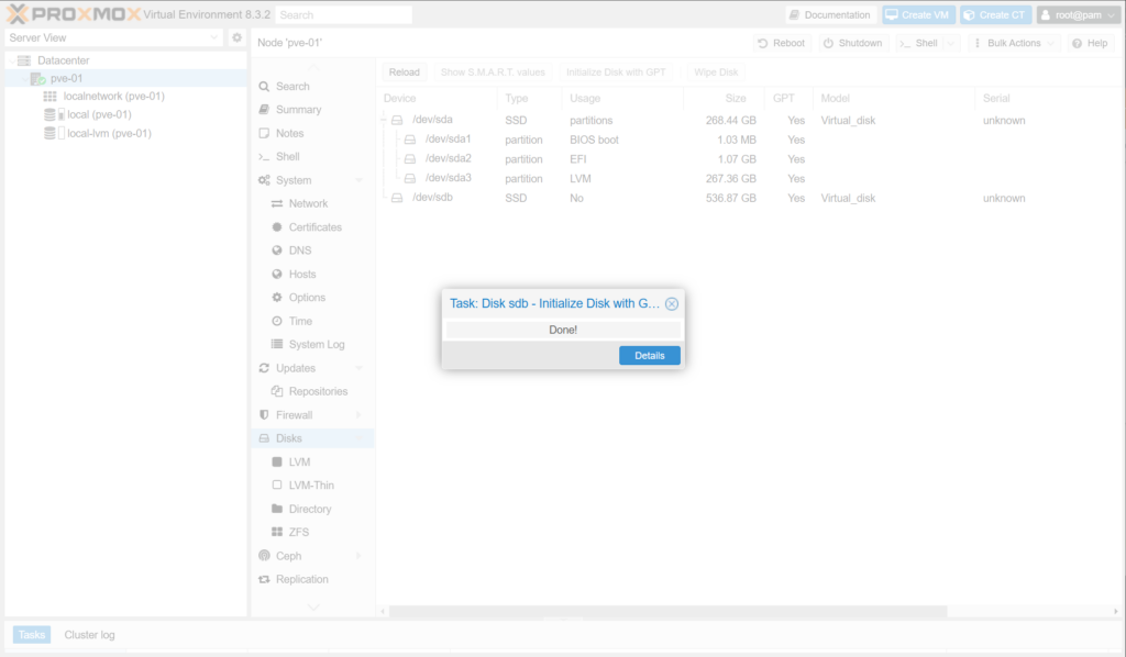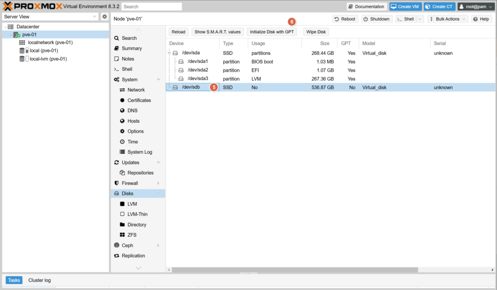 LVM-Thin 방식으로 Storage가 Proxmox VE에서 가장 많이 사용될 것으로 예상됩니다. 여기서는 LVM-Thin 방식으로 추가하는 방법에 대해서 알아보도록 하겠습니다.
