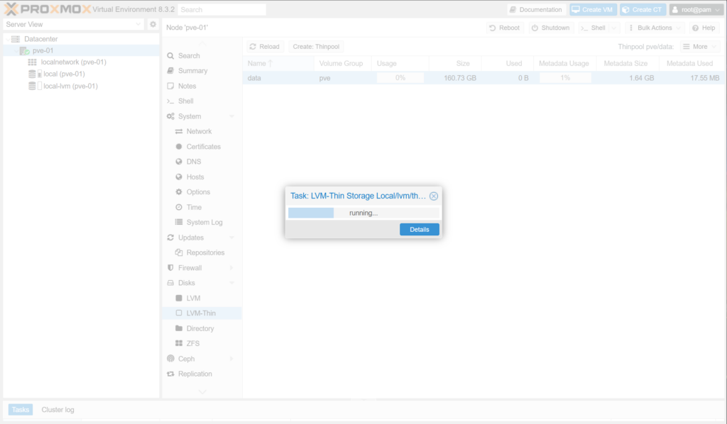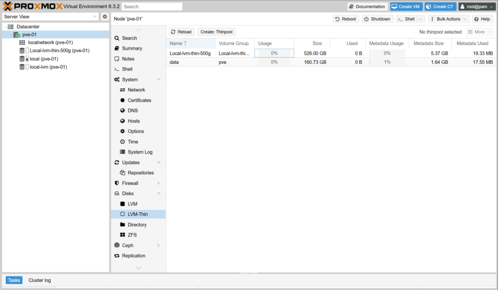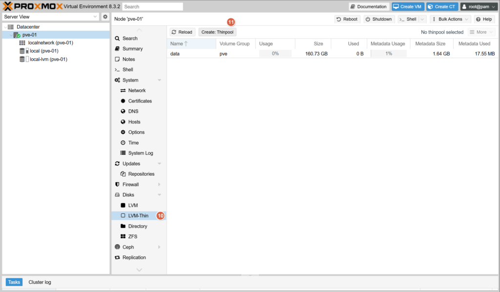 (10) Disks 메뉴 아래의 LVM-Thin을 선택합니다.