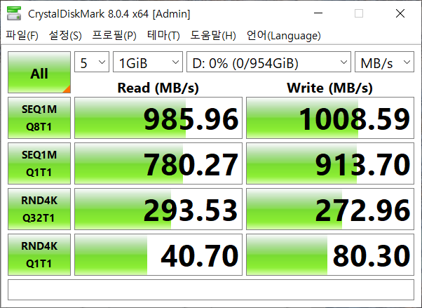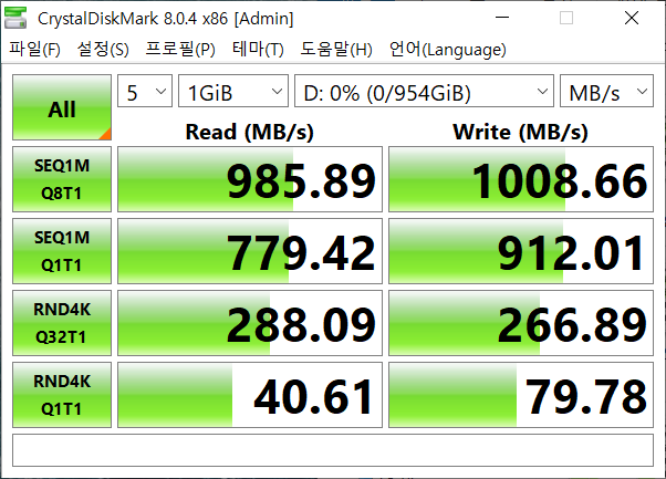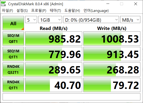 PC를 새로 조립하면서 외장 SSD를 좀 더 적극적으로 사용해야하는 상황이 됐습니다. 처음 윈도우를 설치해보고, 숫자놀이를 위해서 CrystalMark를 돌려봤더니 생각했던 숫자가 안나오는 겁니다.