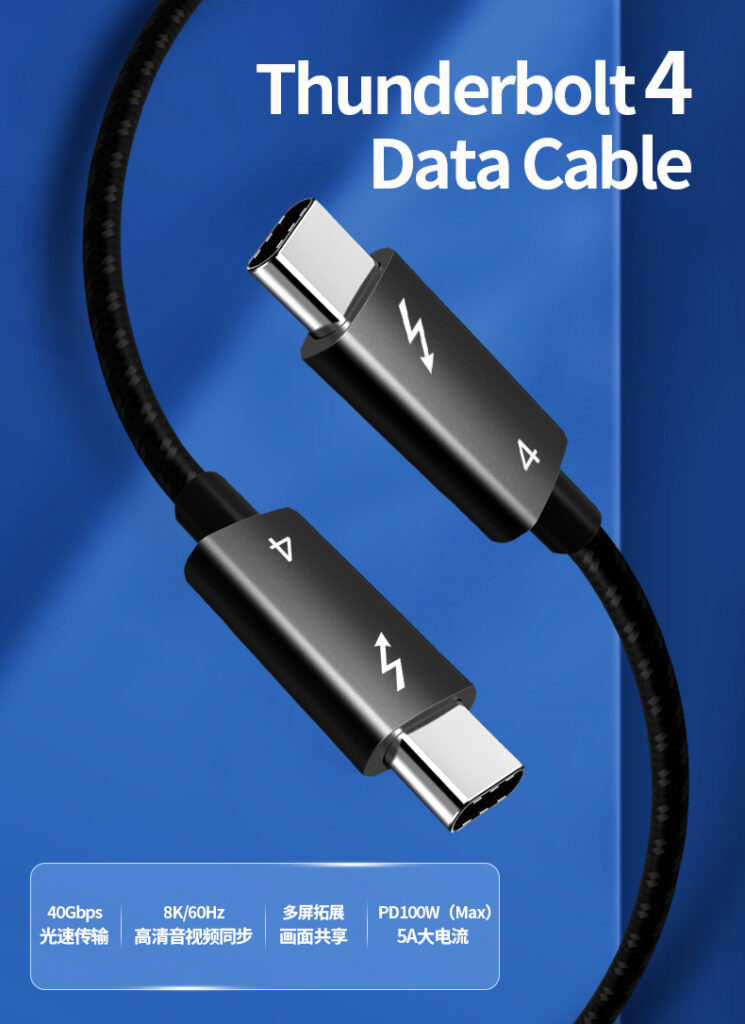 USB4 케이블은 이론적으로는 썬더볼트3 케이블과 동일합니다. 판매업체도 USB4 ThunderBolt 3이라 써 놓기는 했습니다. 다만, 제가 산 것이 진짜로 썬더볼트3과 호환되는지는 아직 잘 모르겠습니다. 일단 위에 썬더볼트4 보다 반값이라 사봤습니다.