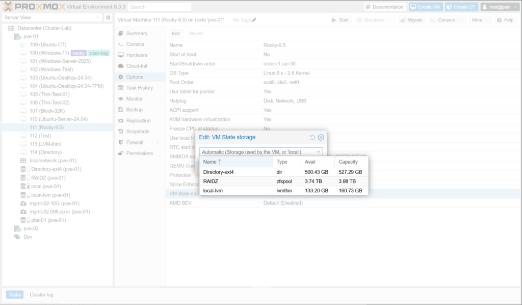 VM의 실행 상태(Suspended State)를 저장할 스토리지를 지정합니다.