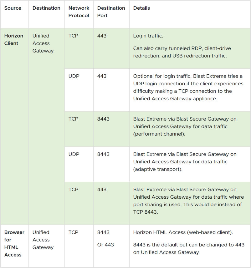 클라이언트 소프트웨어를 설치할 수 없는 장치의 HTML 클라이언트로 웹 브라우저를 사용할 수 있다. - Unified Access Gateway : VMware Unified Access Gateway는 외부 네트워크에서 Horizon 관리 리소스를 비롯한 다양한 내부 리소스에 대한 안전한 원격 액세스를 지원하는 가상 어플라이언스.