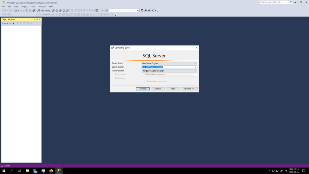 현재 AD 조인한 서버에 설치했고, AD에서 로그인한 컴퓨터에 접속한 상태기 때문에 별도의 인증 정보를 묻지는 않는다. 이 부분은 설치 상황에 따라 다를 수 있으니 참고하기 바란다.