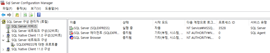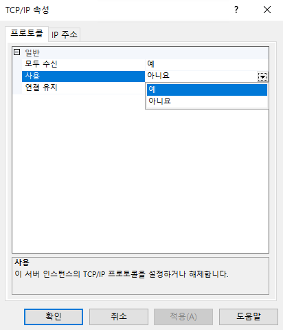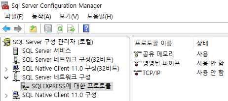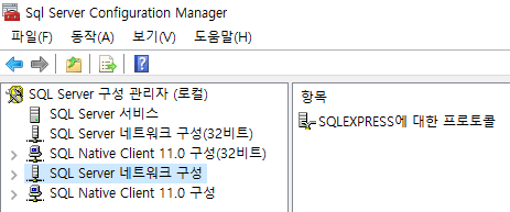 오른쪽에서 “SQLEXPRESS에 대한 프로토콜”을 두번클릭한다.